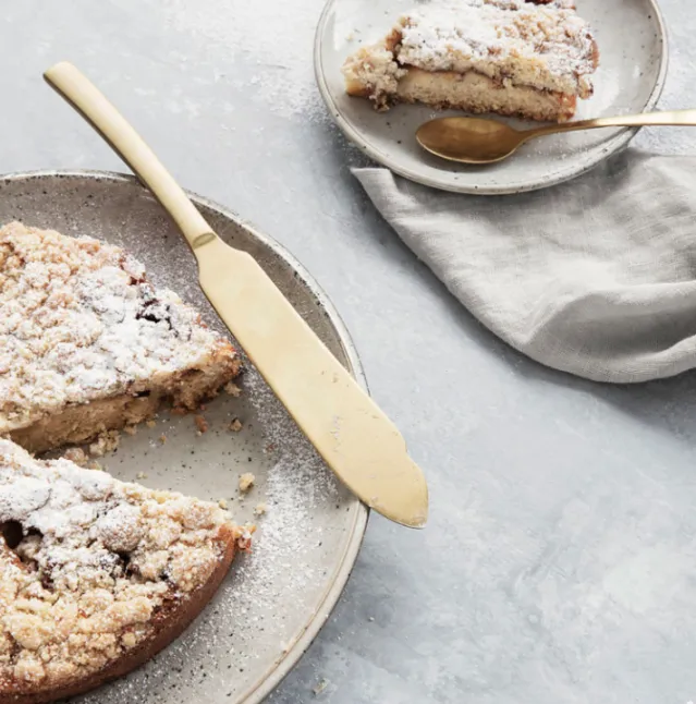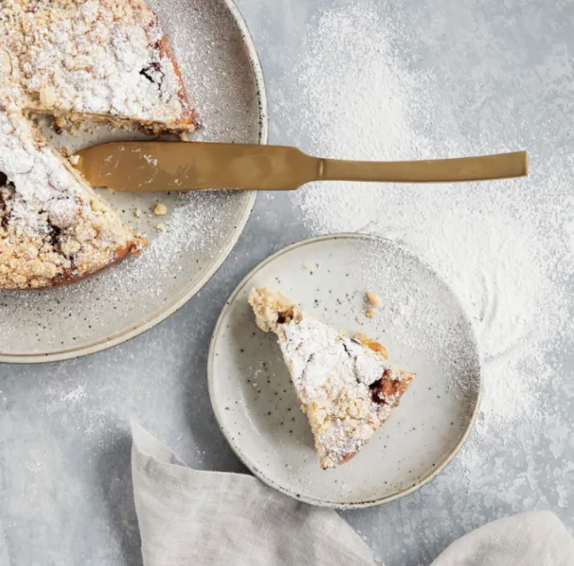 Er du på jakt etter det perfekte kakeserveringssettet – så se ikke lenger. Med Golden fra House Doctor får du et vakkert sett med serveringsbestikk for kaker som vil gi et eksklusivt, sofistikert og stilig utseende til kakebordet ditt. Settet består av to deler – en kakekniv og en kakespade. Golden er laget av rustfritt stål, men som navnet antyder, er det dekket med et gullbelegg for å gi det et vakkert, gyllent utseende. Golden’s design og appell vil gi et personlig og stilig preg på ethvert kakebord. Kakeserveringssettet måler 27 cm og kan vaskes i oppvaskmaskin.