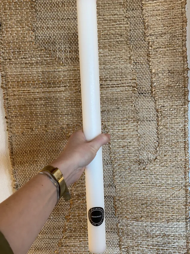 Lyset er 36 mm i diameter og 500 mm høyt. Vær obs på at lyset er bredere enn normale kronelys.