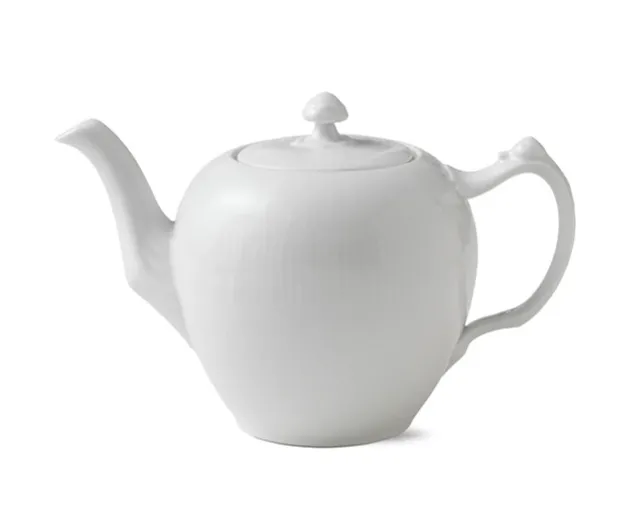 Denne 100 cl hvit riflet tekannen utstråler en uanstrengt enkelhet skapt av umalt porselen, som er utsmykket av taktile fløyter som er skåret ut for hånd.