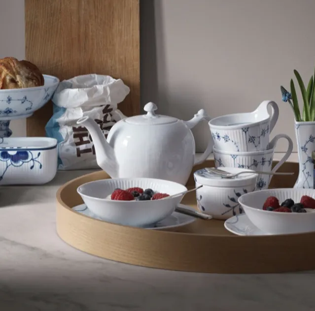 Hvert stykke White Fluted er vakkert for seg selv og i kombinasjon med en eller flere av Royal Copenhagens håndmalte middagsserviser.