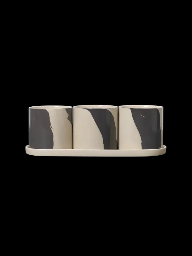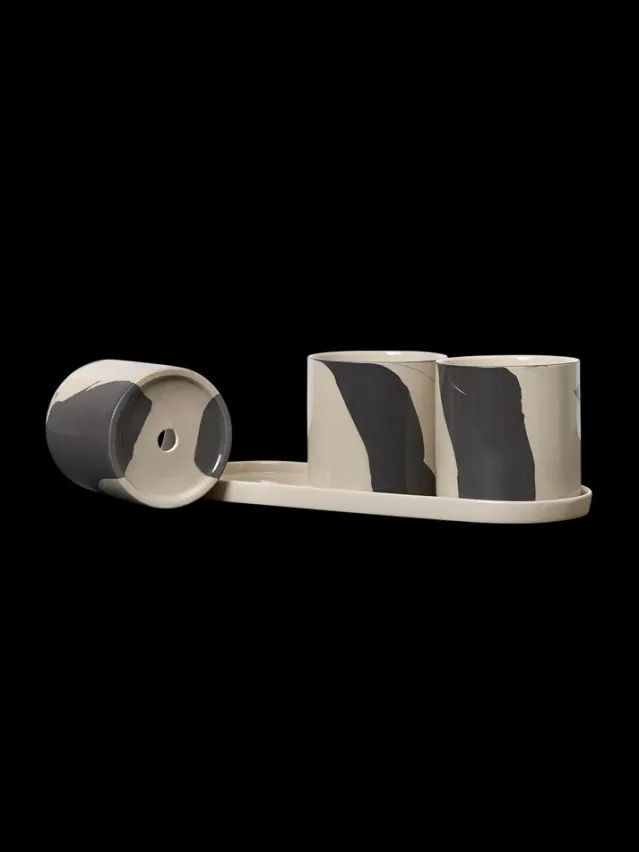 Disse utepottene er laget av steintøy som har en særegen tofarget blanding av leire for å skape et storskala, marmorlignende mønster – som hver er unik for det enkelte produkt. Inlay Herb Pots består av tre potter med dreneringshull og en tallerken som setter et elegant preg på kjøkkenbenken din og lar deg vise frem alle de uunnværlige urtene dine.