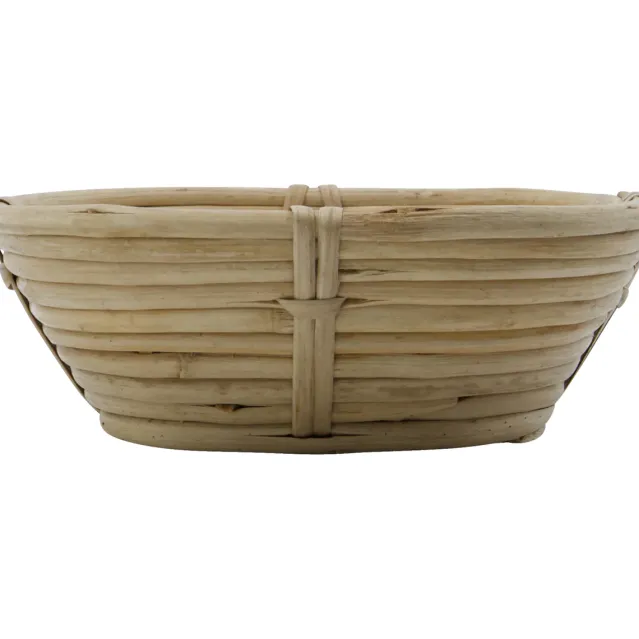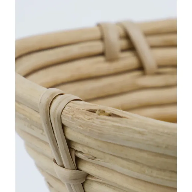 Legg til et snev av rustikk sjarm til kjøkkenet ditt med denne håndvevde kurven. Laget av en blanding av naturlig rotting og bambus, dens varme toner og intrikate design gjør den både funksjonell og dekorativ. Perfekt for oppbevaring av tørr mat eller som en stilig brødkurv, det utsøkte håndverket utfyller enhver kjøkkeninnredning.