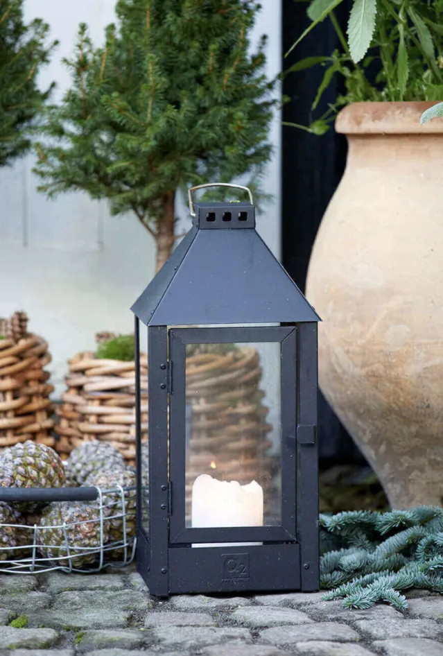Lykten er laget av kraftig galvanisert plate (0,8 mm) og glasset har en tykkelse på 3 mm. Hengsler, nagler og håndtak er i rustfritt stål. Med disse veloverveide valgene av solide materialer og kontinuerlig produktutvikling det siste tiåret, hvor alt unødvendig er kuttet bort og kvalitet og nytteverdi er prioritert, er sluttproduktet her en lykt av høyeste kvalitet.