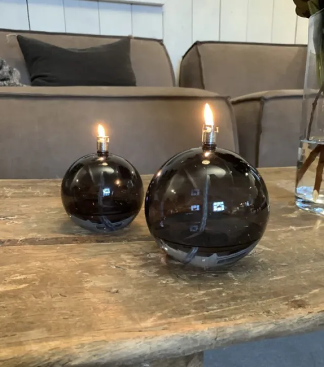 Oljelamper i fargen Smoke fra Peri Design – vakre lamper som kan brukes alene, flere sammen, eller i lykter !