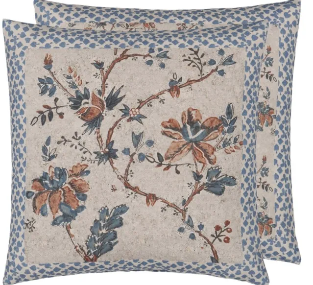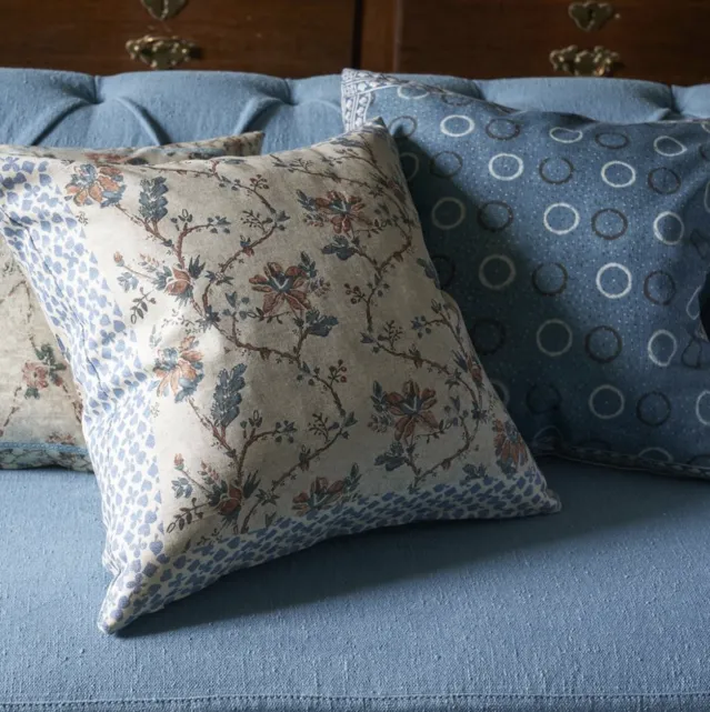 Sjarmerende pute med mønster som er inspirert av «male over» med flytende vinstokker, blomster og blader som avslører teksturene og vintage-sjarmen til det originale franske dokumentet fra John Derian-arkivet.