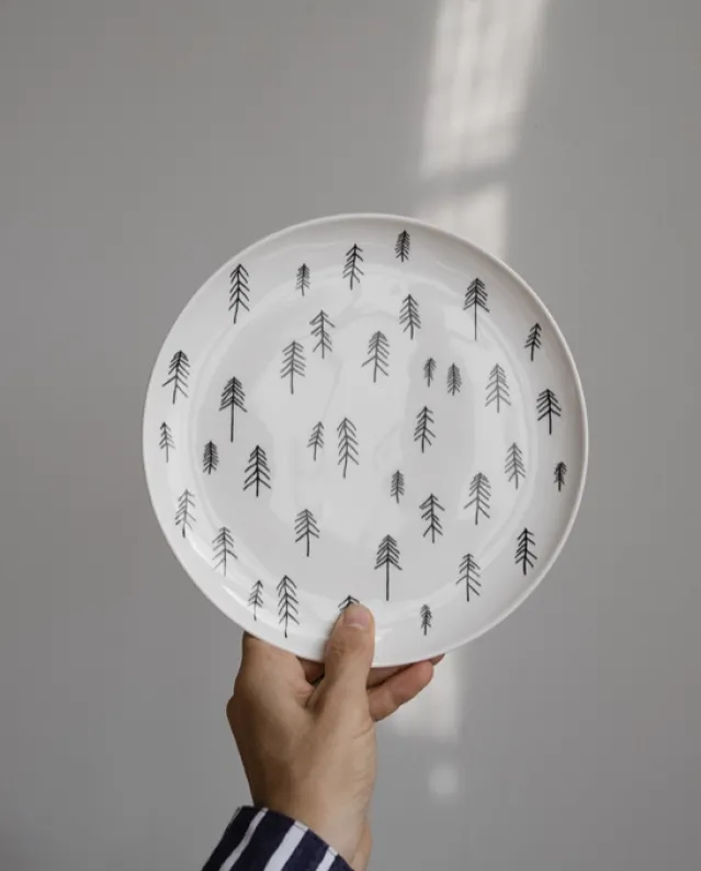 Håndlaget tallerken i porselensleire. Tallerkenen kommer glasert. Kombiner gjerne med kruset i samme serie.