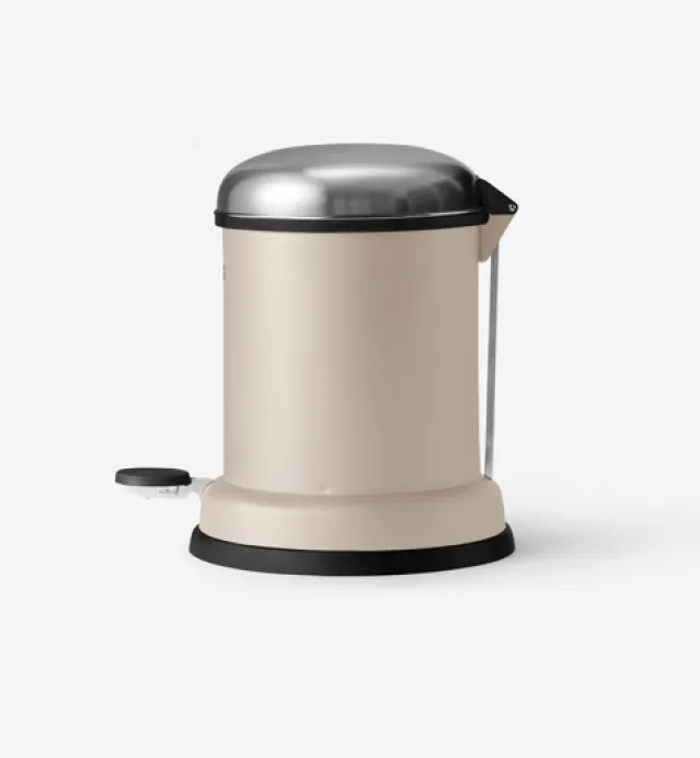 Vipp14-pedalbøtten er en liten søppelbøtte perfekt på badet. Lokk i rustfritt stål, med dempemekanisme, og gummiring som sørger for luft-tetthet. En gummiring på bunnen beskytter gulvet. Yttersiden er pulverlakkert. Innvendig spann er i galvanisert stål, og kan enkelt tas ut.
